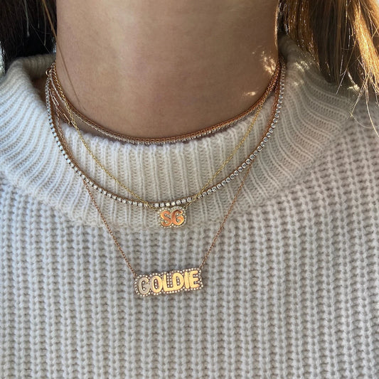 Multi-name diamond tennis necklace